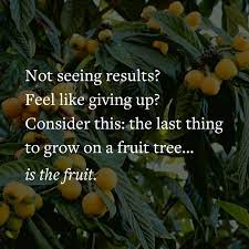 I wrote a post a few weeks ago about my frustration about all the unseen work that goes into what I do and how I just wish that what I’m doing would finally start to bear fruit. It is hard to put constant effort into something day in and day out and just never see anything grow from it. Certainly not the picture of growth that you had in your mind anyway. Then I was reminded the other day when someone sent me a message to not give up and to keep pushing through along with a quote about the fact that the very last thing anyone ever sees growing on a fruit tree is the actual fruit.